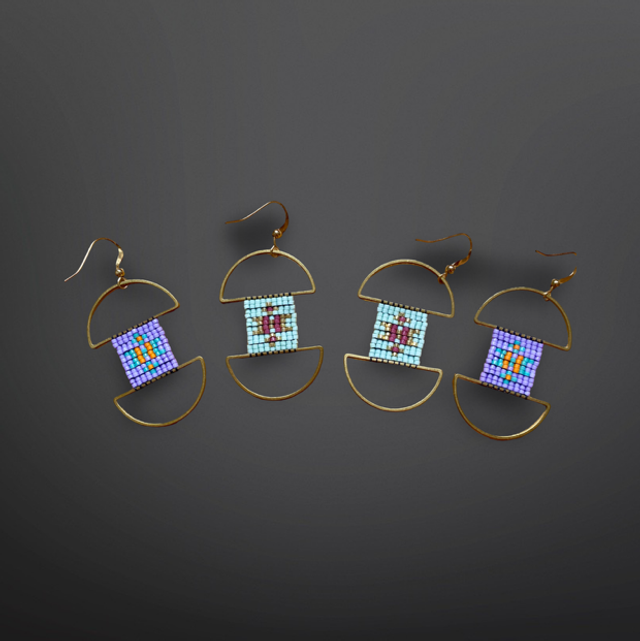 Boucles d’oreilles tissées à la main en perles Miyuki - anneaux demi rond en Laiton et crochets d’oreilles en Gold Filled (Or laminé) - longueur ~5cm